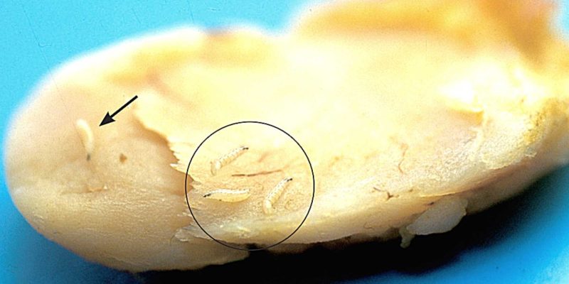 בוקעות מהביצים רימות קטנות, החודרות לתוך הבשר.
