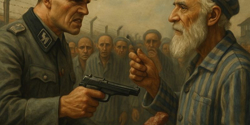 “תשמע,” אמר, “המלחמה נגמרת. הסובייטים בדרך. אנחנו מפסידים. אבל דבר אחד אני לא מסוגל לשאת – שאתה הצלחת להישאר חזק ואני לא הצלחתי לשבור אותך. רק אם תטעם מהבשר הזה – אתה יוצא מכאן חי. אם לא? אני יורה בך עכשיו.”